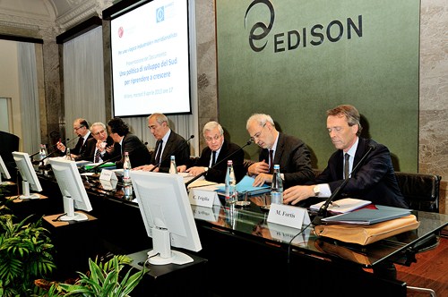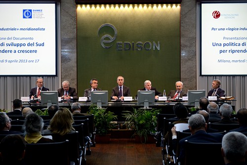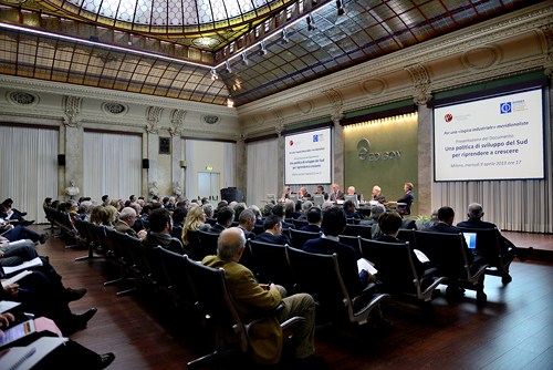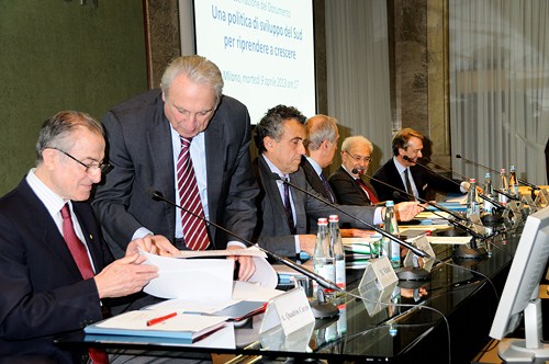 Il convegno ha presentato un documento redatto e sottoscritto da 21 Istituti merionalisti. Dopo i saluti del Dr. Unberto Quadrino e l'introduzione dei Professori Adriano Giannola e Alberto Quadrio Curzio, sono intervenuti , il Ministro Fabrizio Barca, i Professori Marco Fortis e Carlo Trigilia e l'economista Marco Vitale.